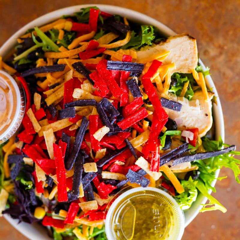 Side salads include: Pasta salad, Red Potato salad, Black Bean & Corn salad, Fresh fruit or Tossed Green salad.